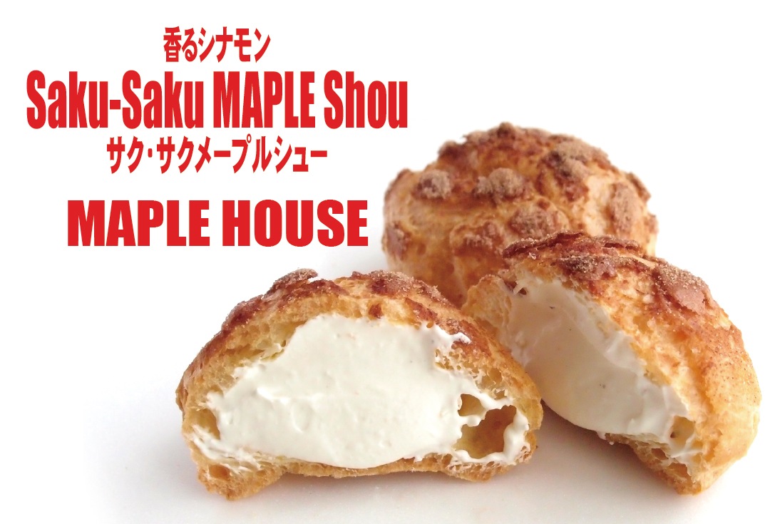 シナモンの風味のシュー皮にメープルハウス特製のカスタードがたっぷり、こだわりが生んだシュークリームです。